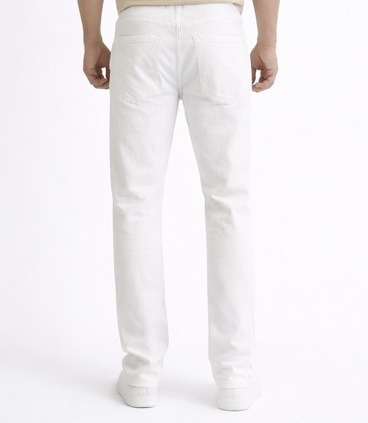 Klasične bijele traperice uskog kroja koji prati liniju noge cijelom dužinom. Izrađene su od čvrstog bijelog trapera. Kopčaju se patentnim zatvaračem i gumbom u struku.