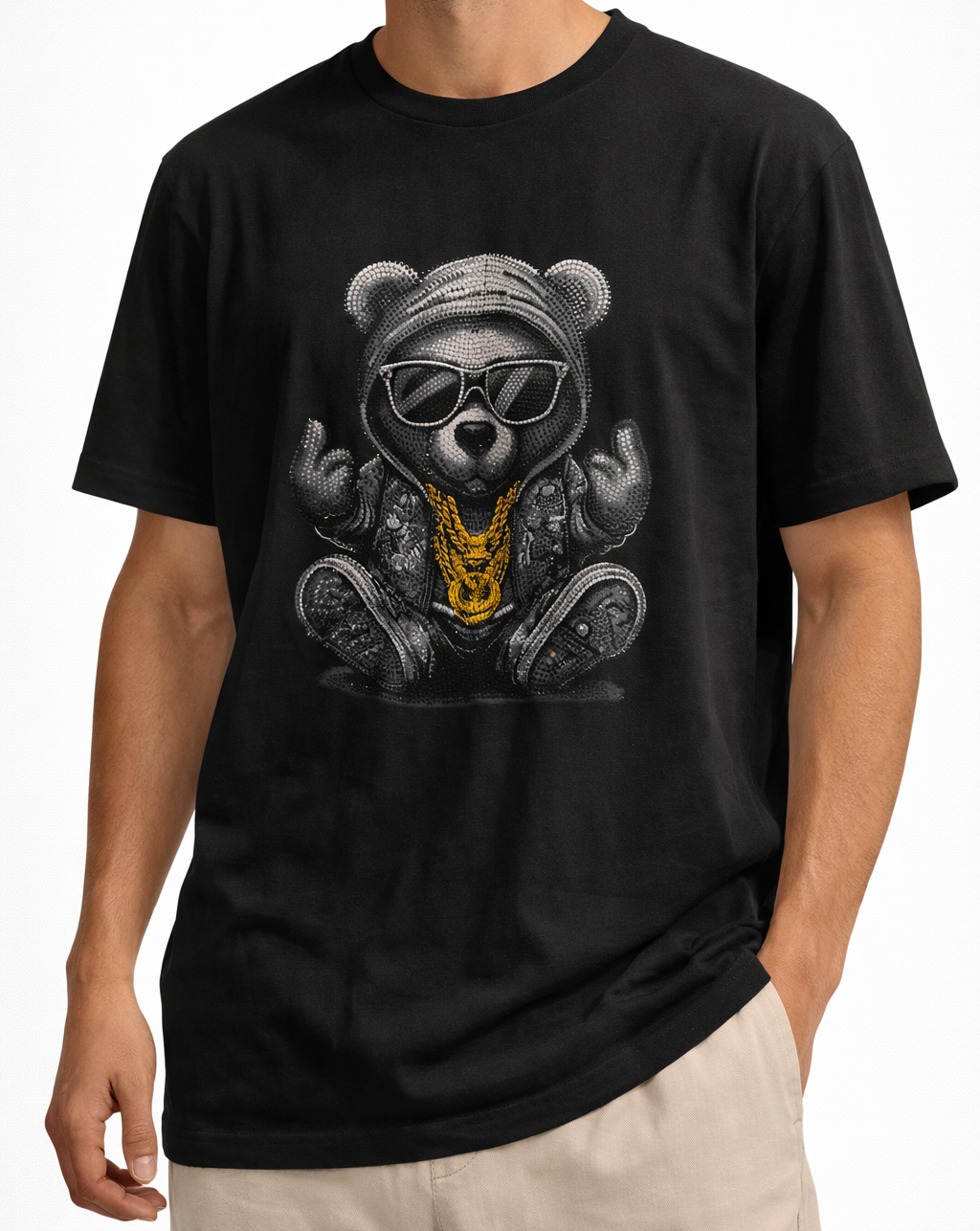 Ova majica donosi izražen street style karakter sa fokusom na detalje i snažan vizuelni identitet. Grafički print medvjedića u kontrastnim tonovima daje moderan i edgy izgled koji se lako uklapa u savremene kombinacije. Savršena je za one koji žele jednostavan komad sa jakim modnim efektom. Mekan i lagan materijal omogućava udobnost i slobodu pokreta, čineći je idealnim izborom za svakodnevno nošenje.