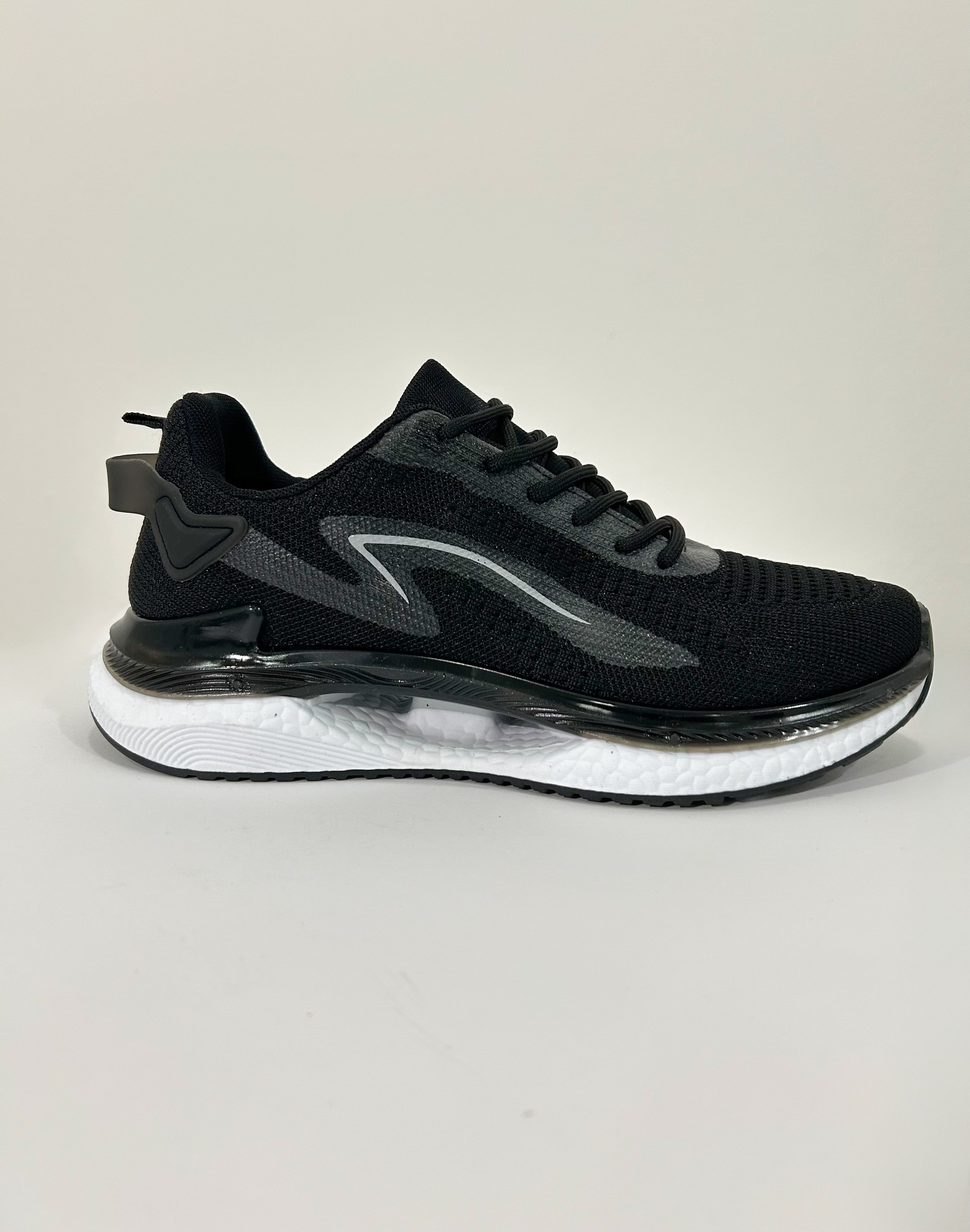 Ove patike donose moderan, dinamičan dizajn koji spaja sportsku funkcionalnost i urban stil. Gornjište od prozračnog umjetnog materijala omogućava ugodno nošenje tokom cijelog dana, dok naglašene linije i kontrastni detalji daju savremen vizuelni identitet. Deblji, amortizirani đon osigurava stabilnost, dobru apsorpciju udara i osjećaj lakoće pri hodu. Zahvaljujući neutralnoj crnoj boji, lako se uklapaju uz sportske i casual kombinacije, bilo da ih nosite za šetnju, posao ili svakodnevne obaveze.