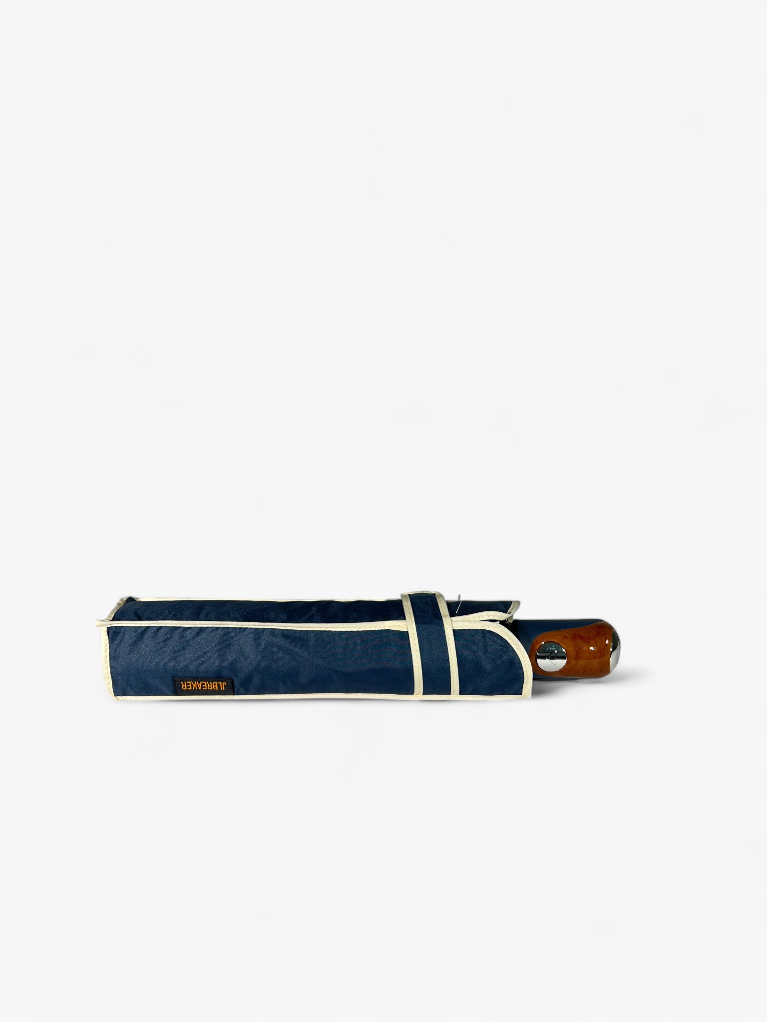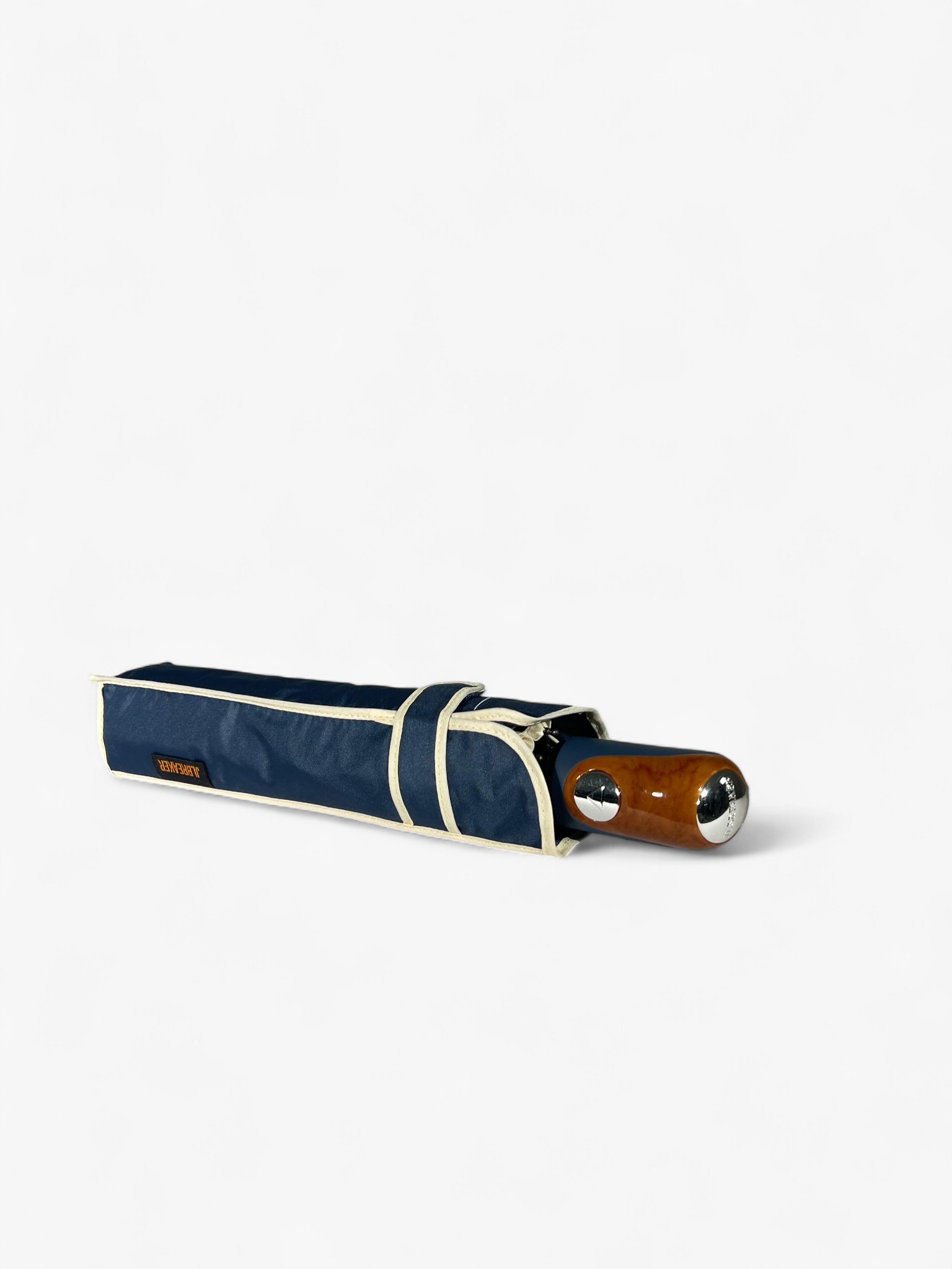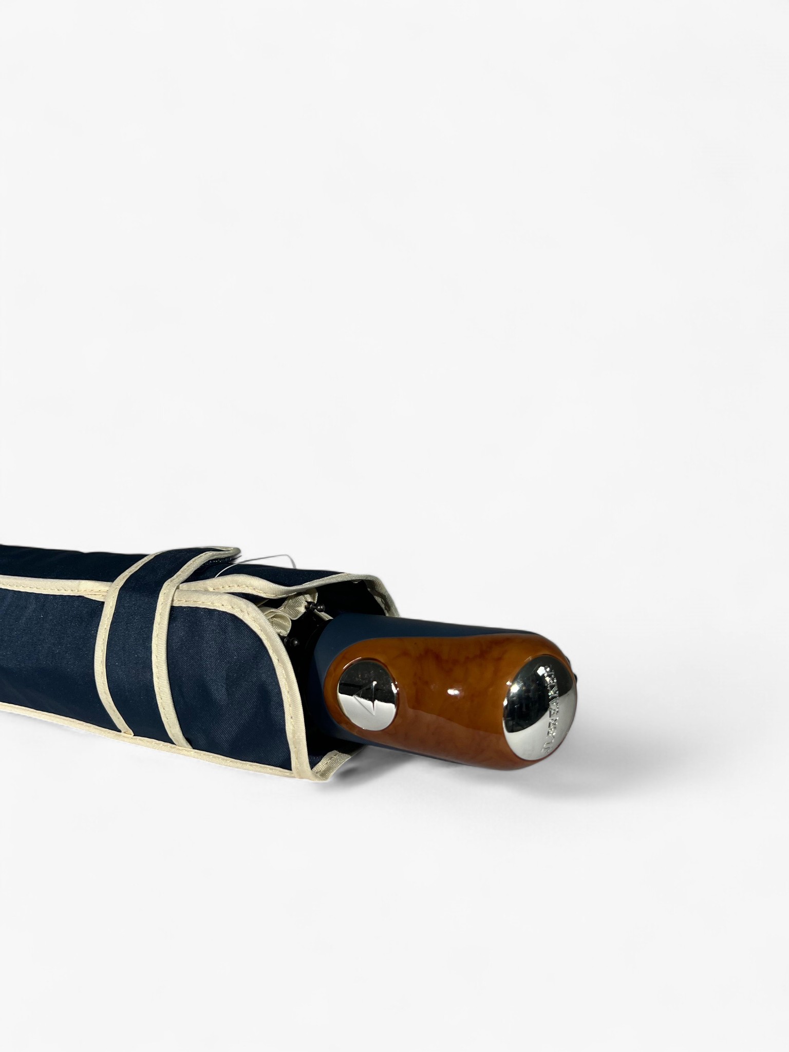 Ovaj mali, sklopivi kišobran donosi spoj klasične elegancije i praktične funkcionalnosti za nepredvidive vremenske prilike. Karakteriše ga čvrsta, kompaktna konstrukcija koja ga čini idealnim za nošenje u torbi ili rancu. Detalj koji ga izdvaja je drška s imitacijom drveta i metalnim, sjajnim krajem, koja mu daje sofisticiran i luksuzan izgled. Futrola kišobrana ima kontrastni obrub (npr., bež obrub na tamnim bojama), što naglašava njegov klasičan dizajn. Bez obzira birate li ga za svakodnevnu upotrebu ili kao elegantni dodatak, ovaj kišobran garantuje da ćete biti stilski zaštićeni.
