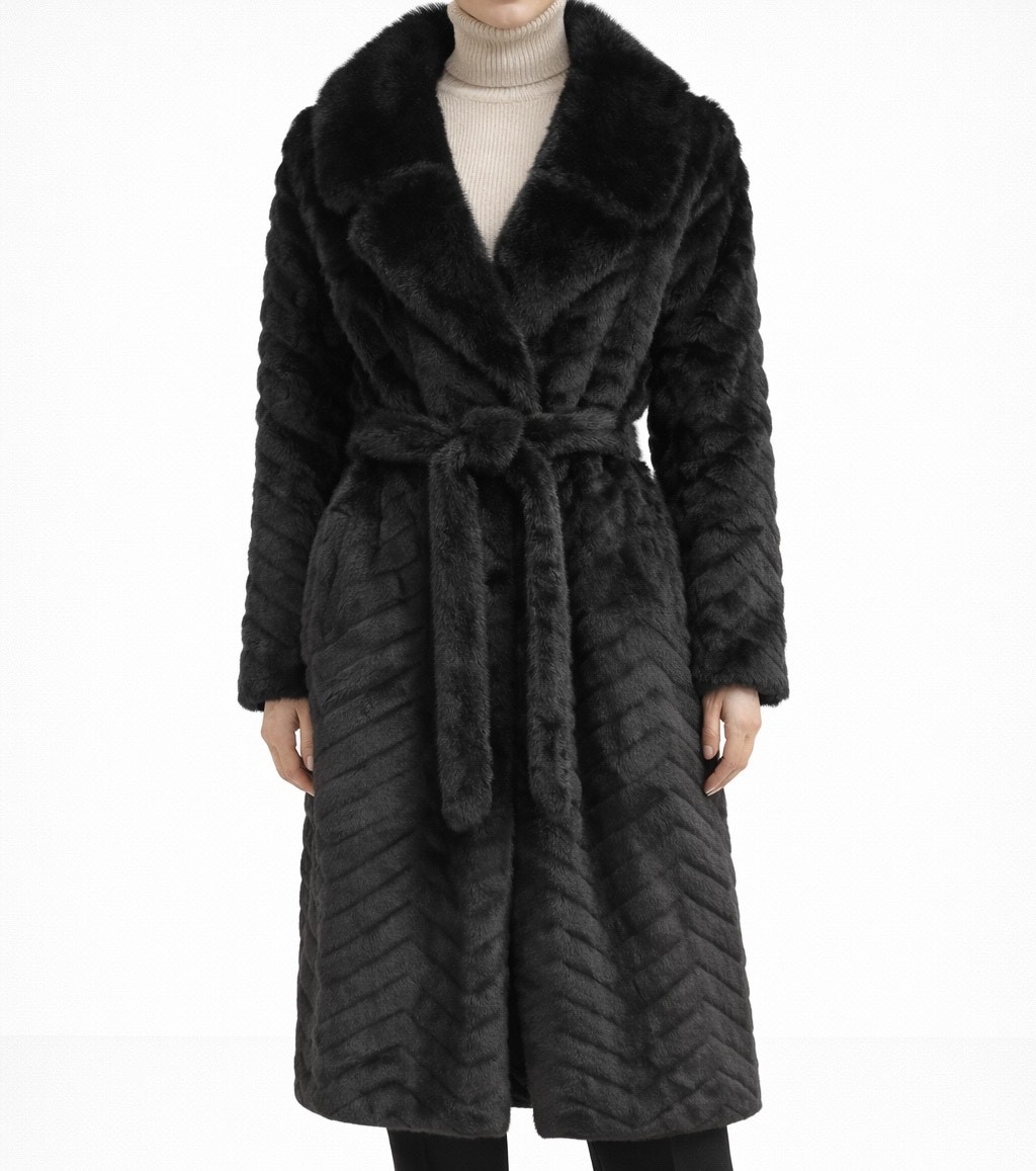 “Velvet Empire” je kaput koji ne prolazi nezapaženo. Bogata tekstura i raskošni krzneni reveri daju mu dramatičnu eleganciju, dok pojas u struku oblikuje siluetu i naglašava ženstvenost.