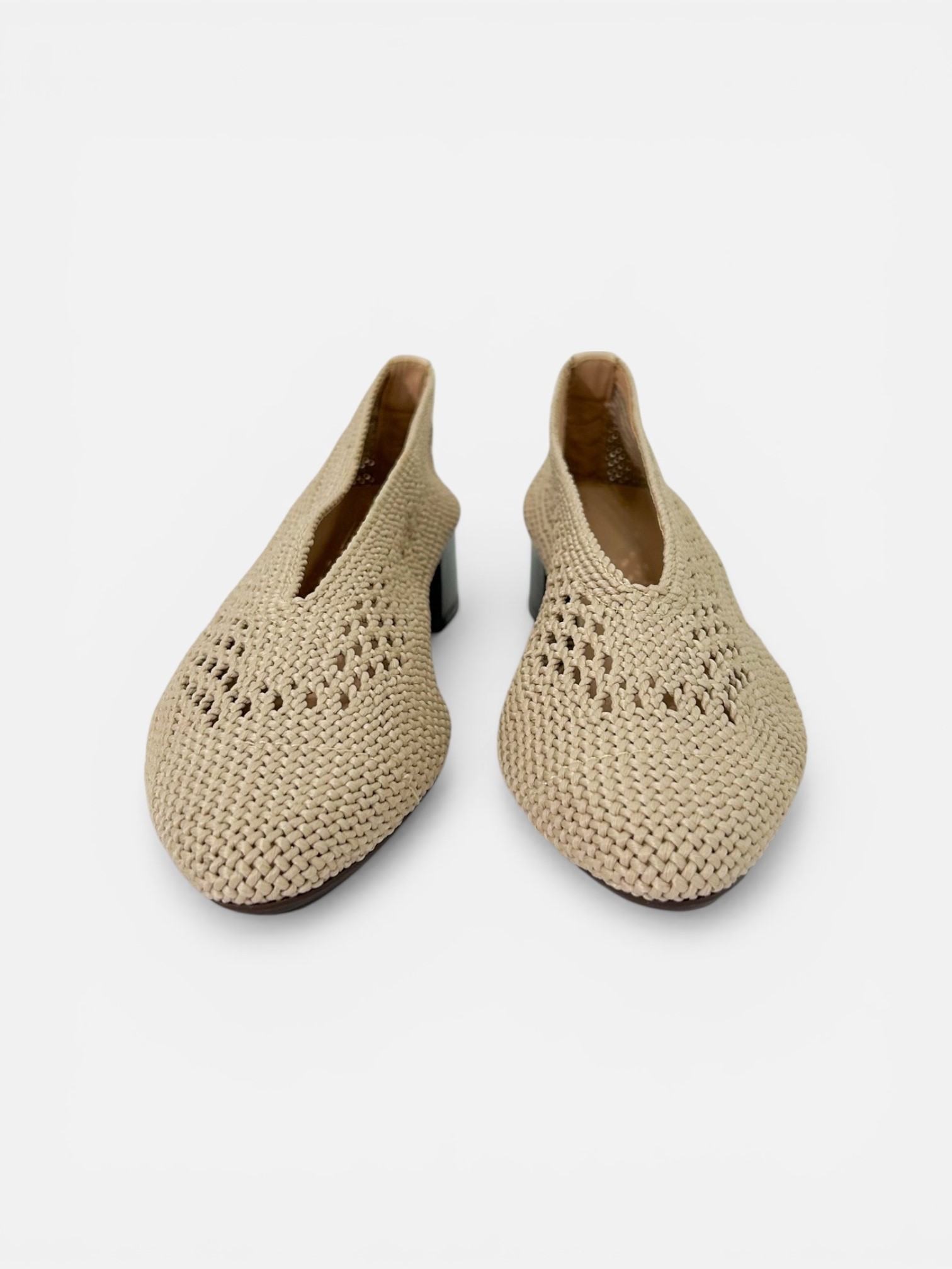 Ove cipele donose dašak razigranosti i modne originalnosti u vašu garderobu. Sa elegantnim pletenim dizajnom, zanimljivom teksturom i upečatljivim detaljima, savršen su izbor za isticanje u svakoj prilici. Njihova sofisticirana silueta i stabilna peta daju savršen balans između elegancije i praktičnosti, čineći ih idealnim izborom za različite modne kombinacije.
