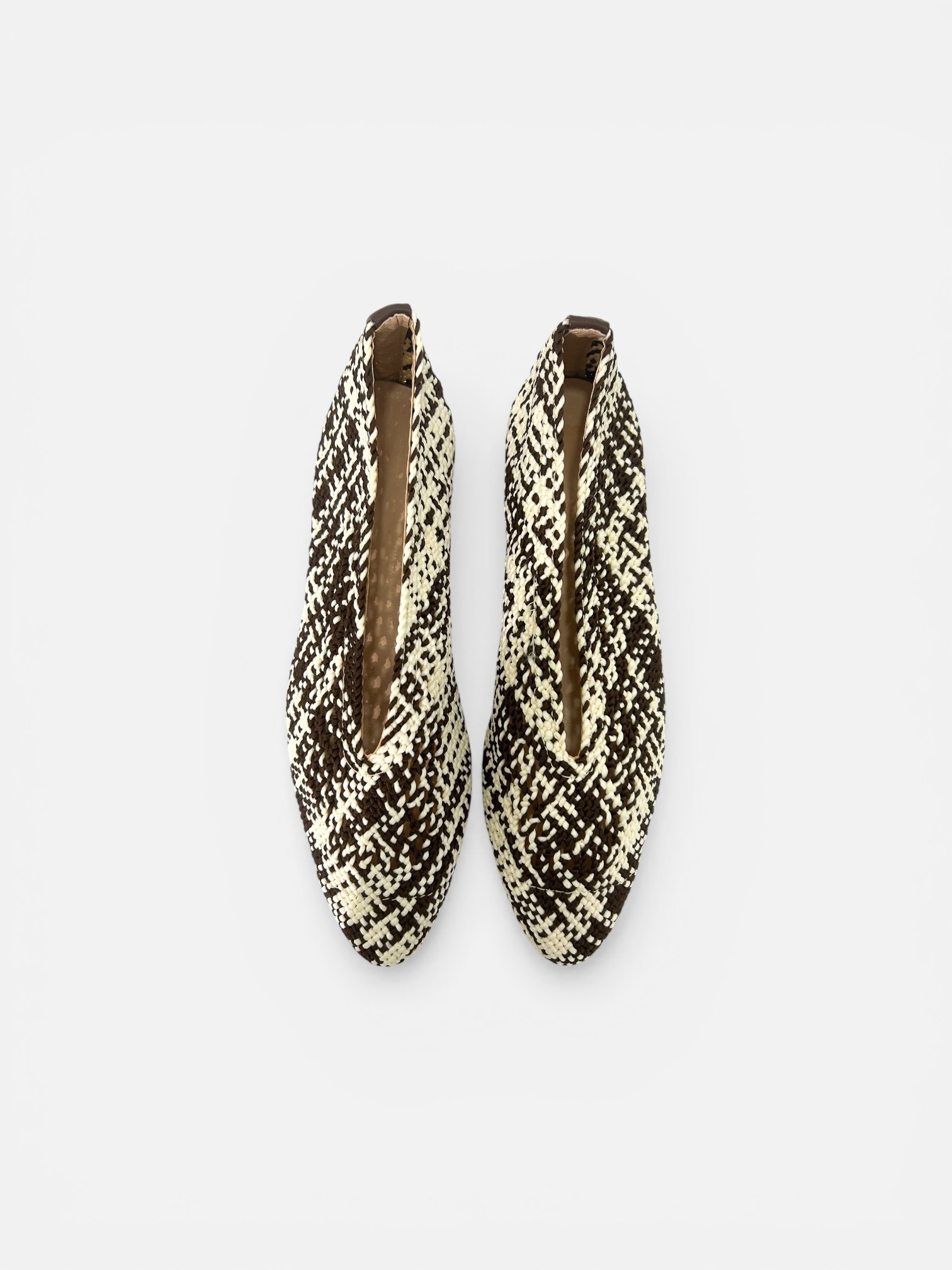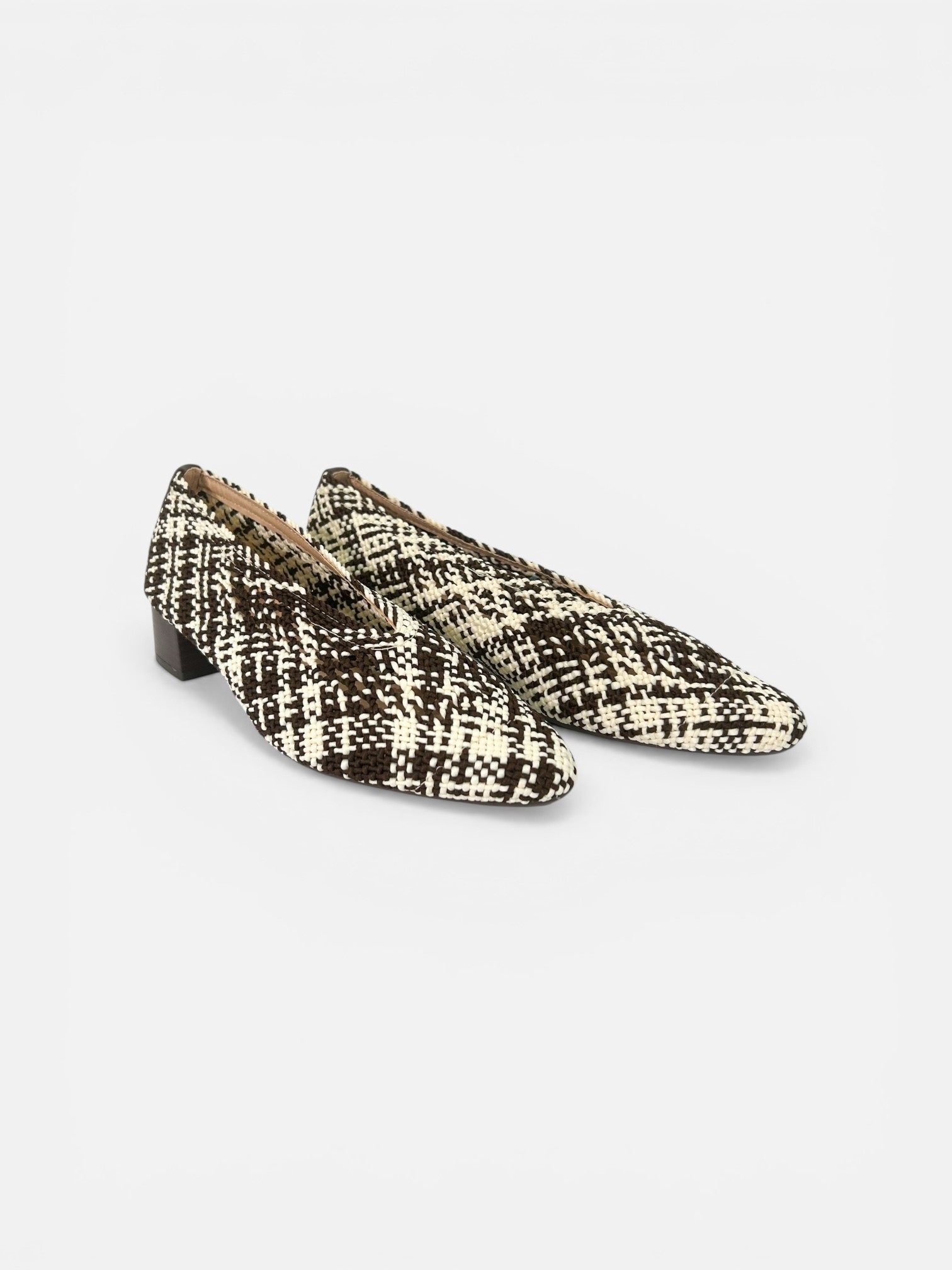 Ove cipele donose dašak razigranosti i modne originalnosti u vašu garderobu. Sa upečatljivim tkanim uzorkom, kombinacijom tekstura i elegantnom siluetom, savršen su izbor za isticanje u svakoj prilici. Njihov jedinstveni dizajn daje poseban modni akcenat i lako podiže svaku kombinaciju.