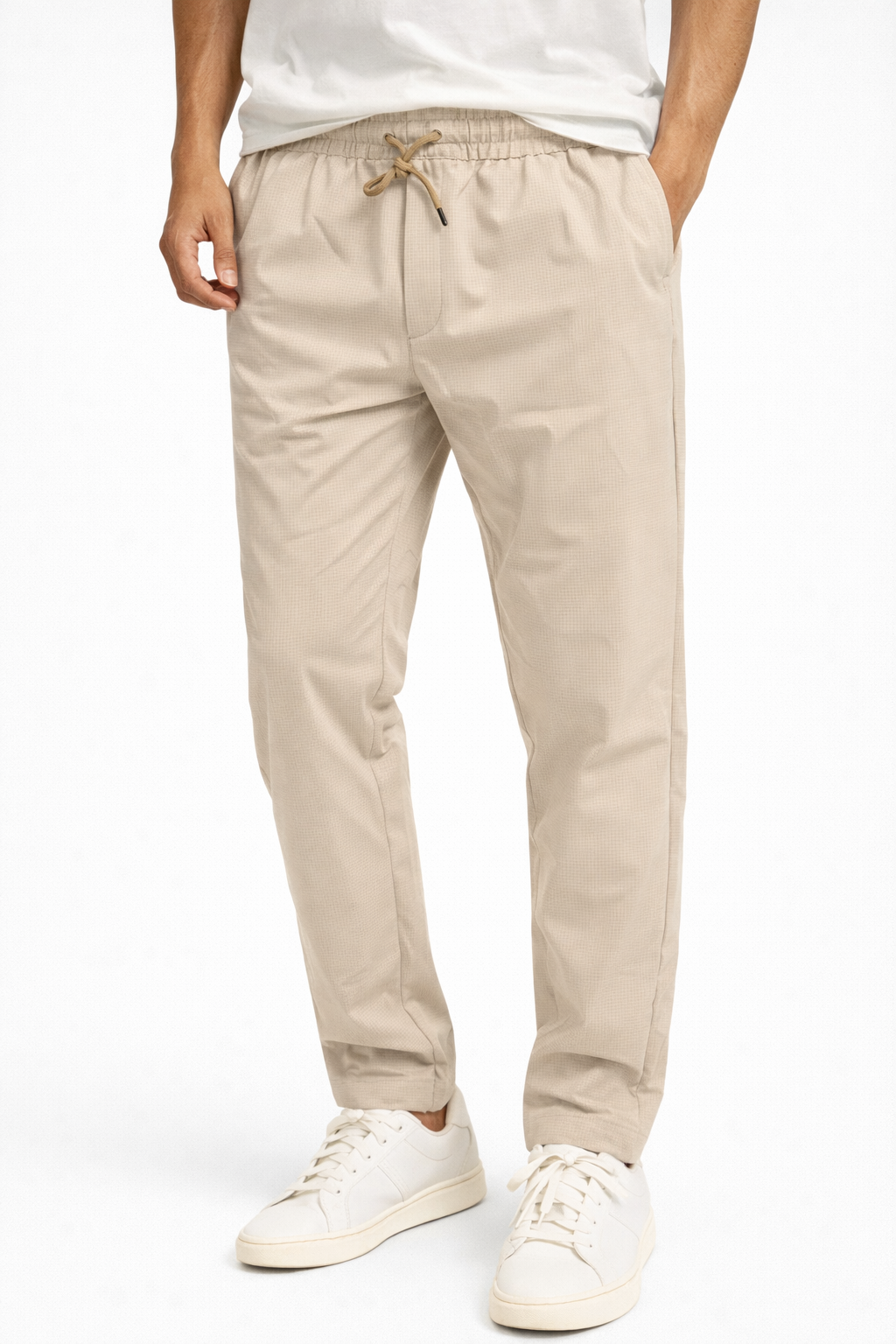 Ove hlače donose savršen balans između udobnosti i modernog stila u vašu garderobu. Sa suptilnim mikro printom koji dodaje teksturu i vizuelni interes, te opuštenim krojem koji prati liniju tijela bez stezanja, idealan su izbor za svaki dan. Bez obzira kombinujete li ih uz basic majicu, košulju ili lagani sako – ovaj komad lako se prilagođava svakoj prilici. Elastični pojas sa vezicom omogućava dodatnu udobnost i praktičnost, dok lagani materijal pruža prozračnost i slobodu pokreta tokom cijelog dana.